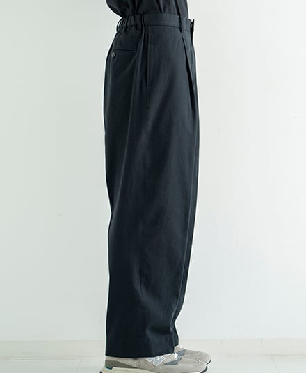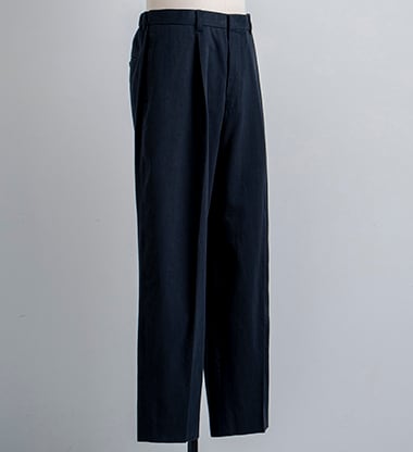 タフにデニムやチノパンのように、プレスを施し綺麗なスラックスを目指しました。